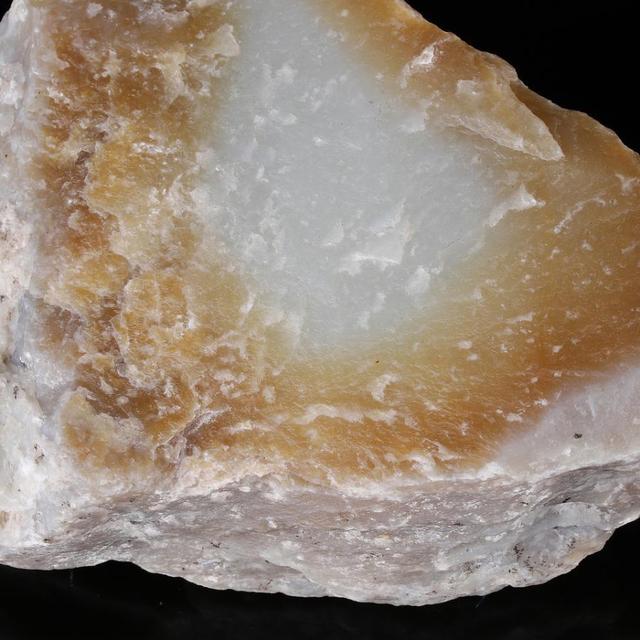 这块和田玉且末料子,颜色为黄褐色、白色。按件销售,放大检查为纤维交织结构,具透闪石特征红外吸收带谱。有鉴定证书,证书编号为ZJY05007064800。.标的物实物请现场看样,以实际现状为准。