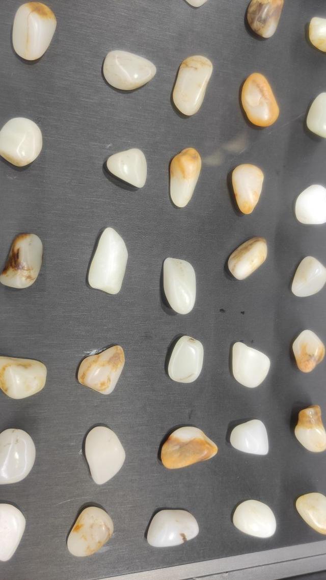 这些美丽的小石头,样式好看的,直接穿个眼就可以挂脖子上。还有一些花100块钱请工匠雕刻一下。也是一件精美的配饰。现在羊脂玉越来越少。这是运气好的话还可以在河里淘到小的羊脂玉,做个戒面也是很不错的。