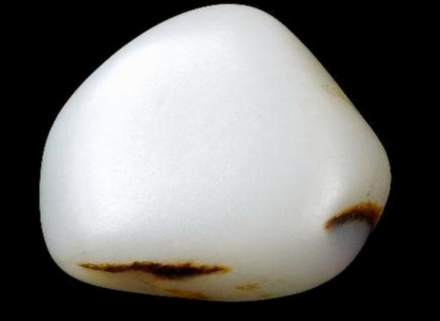 白玉(包含青白玉),颜色白中泛青,细腻,滋润,微透明。此生色或者说沁色多为枣红皮,秋梨皮,红金皮,洒金皮,黑皮子,鹿皮子,糖皮子,石皮等,但籽料的本质或者说主体仍是白玉质地。因为其数量稀少,目前是市面上倍受追捧,且价格最高的品种,其中尤其以“羊脂白玉”著称。不过在众多的和田玉籽料品种中,白玉籽料多以中小块头存在。