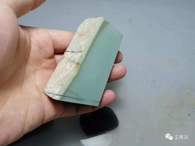 在玉料上绘初稿,为雕刻粗胚做准备,