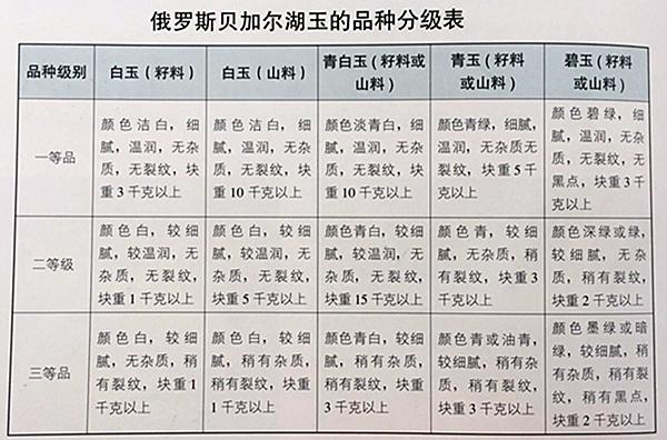 俄罗斯贝加尔湖玉品种分类参考