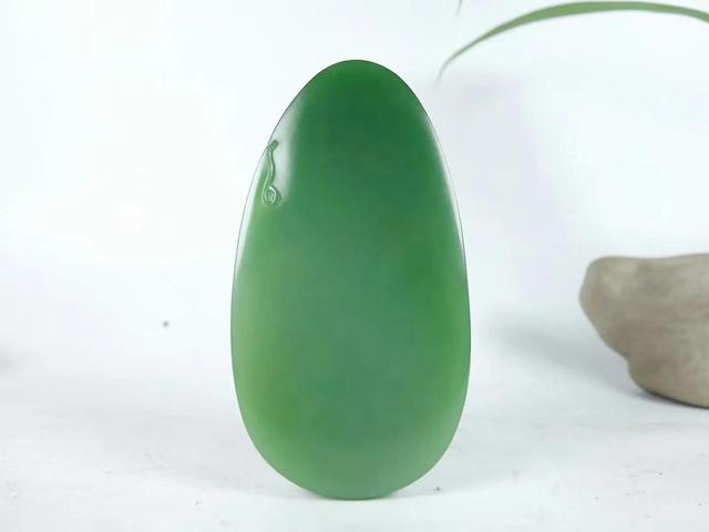 精品和田玉青玉薄胎吉祥如意茶杯。