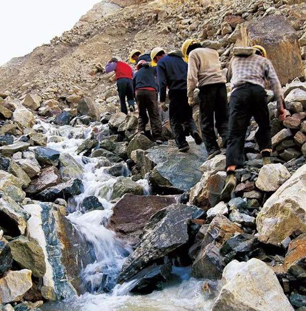 阿格居改冰川以产出羊脂白玉籽料著称,这里是采玉人拾玉捡玉的地方。千万年的冰川作用把海拔更高的原生矿床的玉料侵蚀剥离运送,最后在冰川脚下宝贝们聚在一起等待人们的发现。