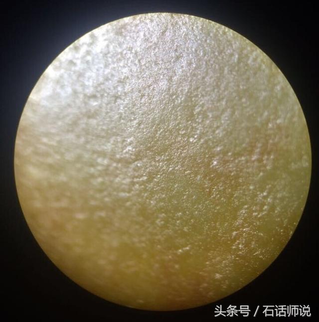 对比这一组图,在放大镜下观察,其毛孔均一度可以达到80%左右,一定真不了。这是因为它的表面经过了人工处理,而且在滚筒中所受到的撞击力、摩擦力是比较均一的,人工虽然能模仿出类似籽料的原皮,但是看起来不会那么自然。