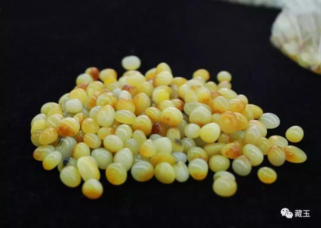 金包银中的包:主要是指皮色的分布状态呈包裹籽料的形态,金黄皮色能够把籽料完全包裹住或者大部分。